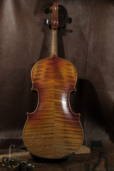 This beautiful 100 year old German Stradivari copy violin has been restored and sound improved by me using the old Italian method of sound development in stringed instruments ensuring that